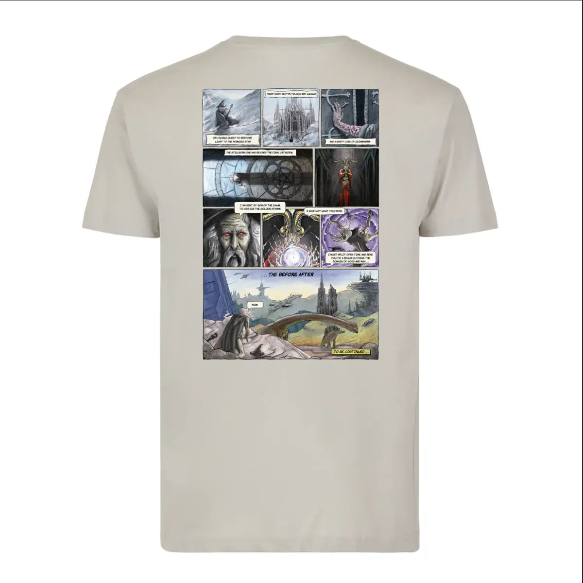 Le t-shirt Blood Wizard - Outer Quest en couleur ciment est confectionné en coton premium doux et sans étiquette pour un confort optimal.